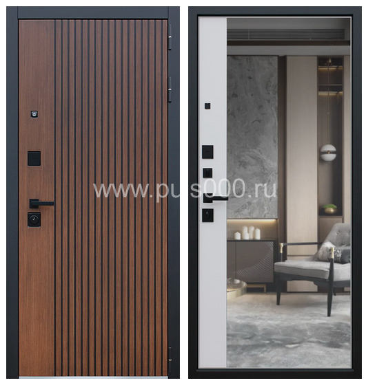 Стальная входная дверь под дерево с зеркалом ZER-115