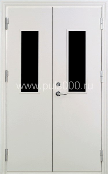 Двустворчатая противопожарная дверь с окрасом НЦ и стеклом ПР-8